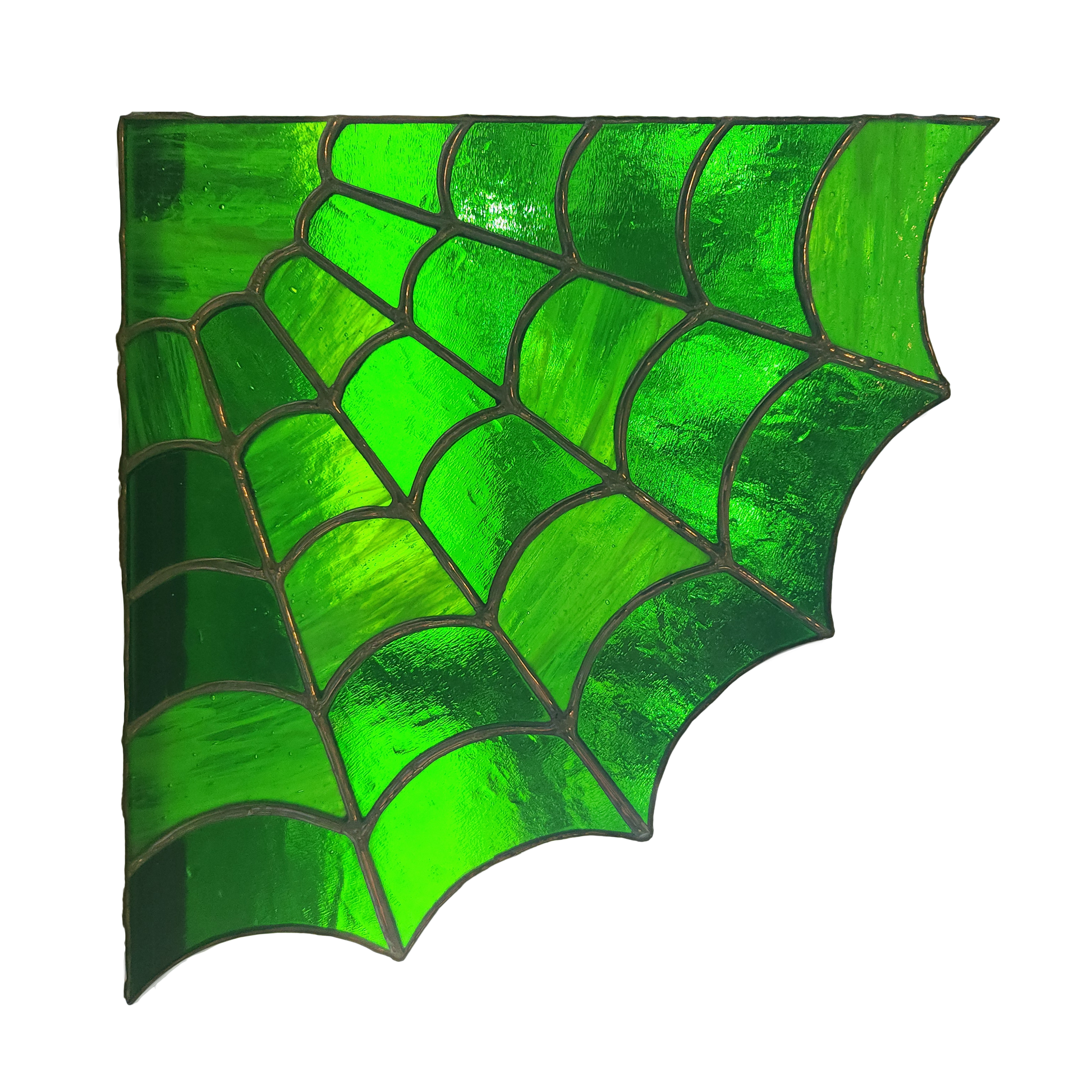 Two shades of rich, green glass with bright silver finish. Two rings for hanging in the corner of your favorite window or doorway. 10.25" Square