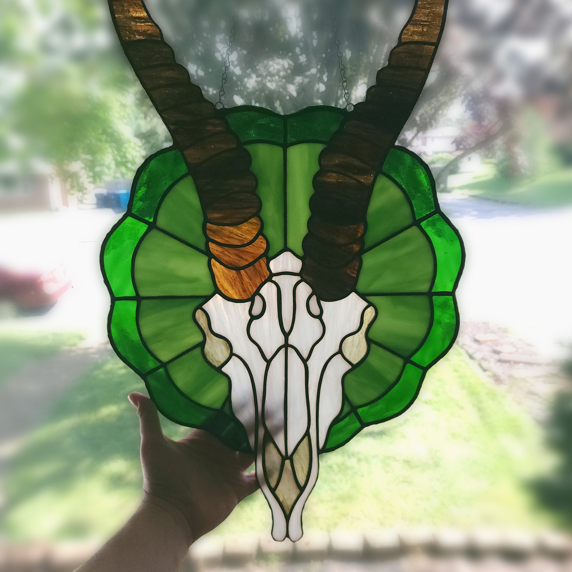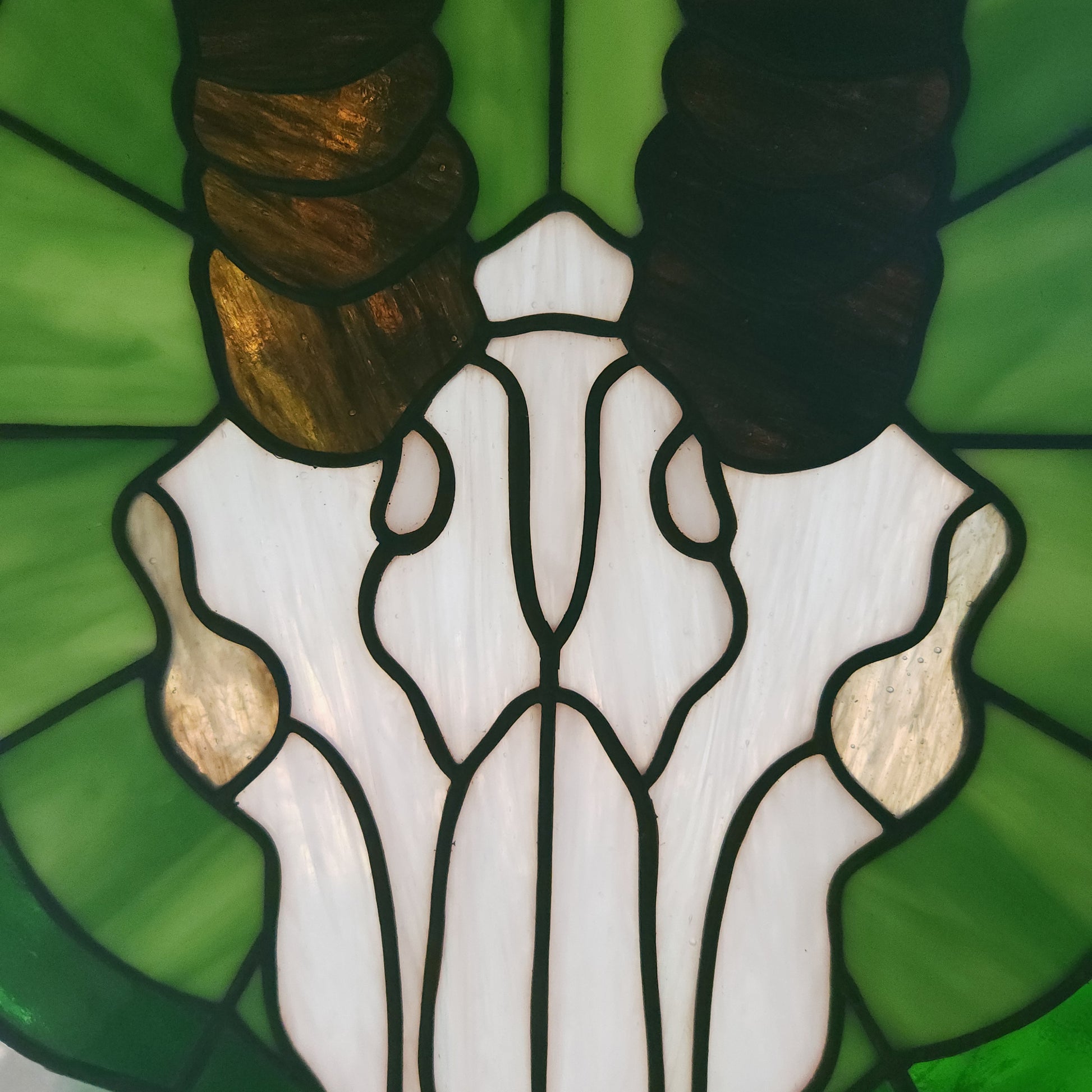 This was one of the first patterns I designed and I'm so happy it came together so beautifully. As you can tell the horns on this one are quite long and I knew it would present a challenge, structurally. A 14g copper wire support runs along the outside of each horn to provide the necessary stability. They are more delicate than the encapsulated areas so please handle with care. 14"w x 25.5"h